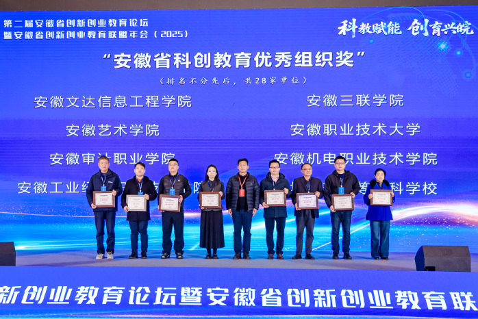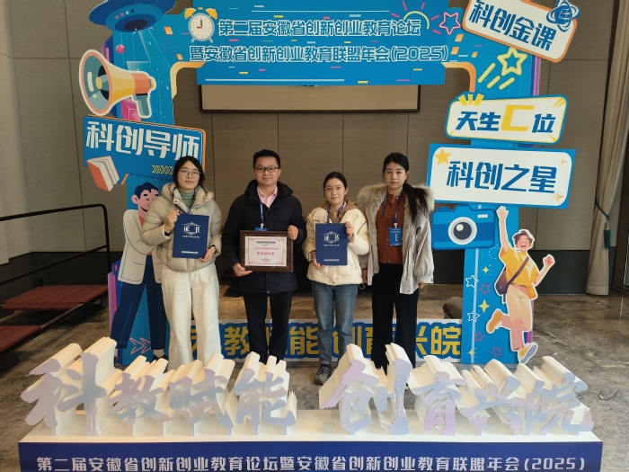 12月20日,第二届安徽省创新创业教育论坛暨安徽省创新创业教育联盟年会在合肥举办,我校凭借在创新创业教育方面的扎实工作,荣获“安徽省科创教育优秀组织奖”。同时,两位教师获评“安徽省科创导师”称号,一支学生团队在安徽省科创之星培育计划创新创业邀请赛中获得铜奖。创新创业学院及师生素质能力发展中心相关负责同志带领学生团队参加了本次活动。